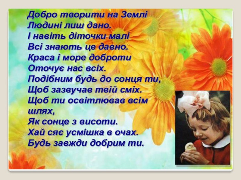 Будьте уважні та добрі до своїх рідних, сусідів та колег! Намагайтеся щодня зробити щось корисне, добре від щирого серця!
