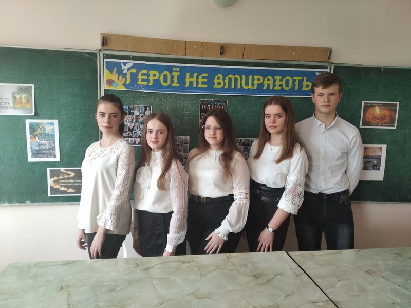 Під час години пам'яті учні згадали подвиг героїв Майдану, що віддали своє життя, відстоюючи ідеали демократії та гідне життя у європейській державі. Діти декламували сучасні вірші, а також провели короткий екскурс від початку Революції Гідності і до її трагічного завершення. Завдяки цьому учні відчули героїчний дух всіх подій, що відбувалися на Майдані у 2013 - 2014 р.