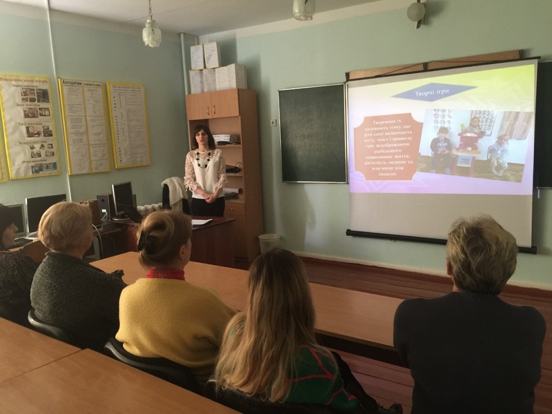 Із мультимедійною презентацією «Гра як основна діяльність дитини дошкільного віку» виступила вихователь Галян Н.С., де показала роботу дошкільного підрозділу з використанням різних видів ігор. Адже саме гра є ефективним інструментом в освітньому процесі для досягнення педагогічних цілей та формування різних компетенцій у дітей. У дошкільному віці гра стає провідним видом діяльності не тому, що вона займає найбільше часу дитини, а тому, що зумовлює якісні зміни у її психіці.