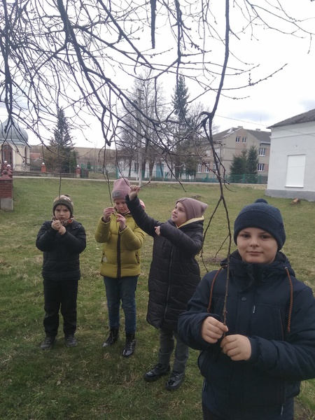 Учні 4 класу 3 квітня подорожували природою своєї місцевості. Спостерігали за зміною рослин у природі весною, за птахами, які вже повернулися до нас. Побачили, що у парку на березі уже розпускаються бруньки, травичка зазеленіла, у ній з'явилися жовті очка кульбаби. Школярі позбирали сміття у парку, біля дороги.