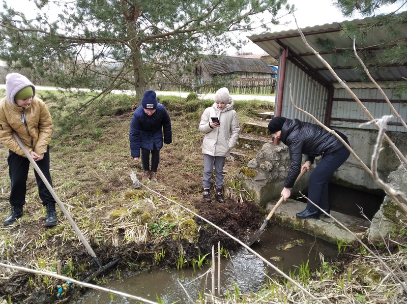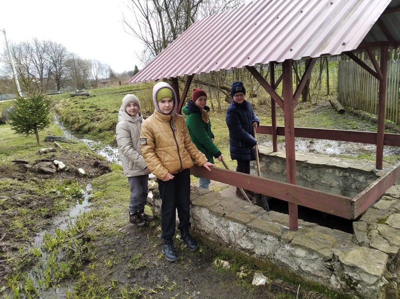 В рамках місячника екології учні 6 класу разом з класним керівником Вульчак Н.М. стали учасниками трудового десанту "Збережемо життя криниці". Побувавши біля сільських криниць, вони не тільки милувалися красою джерел, але й по можливості почистили воду та береги після зими.