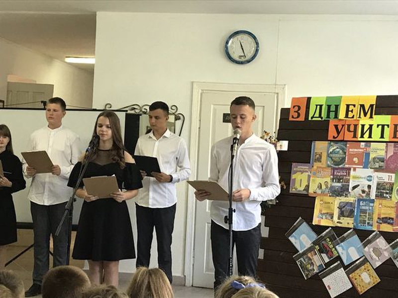 Найстарші учні школи підготували для своїх наставників святковий концерт. Дарували вчителям щирі привітання, чудові пісні, гумористичні відеоролики, тепло, радість, усмішки.
