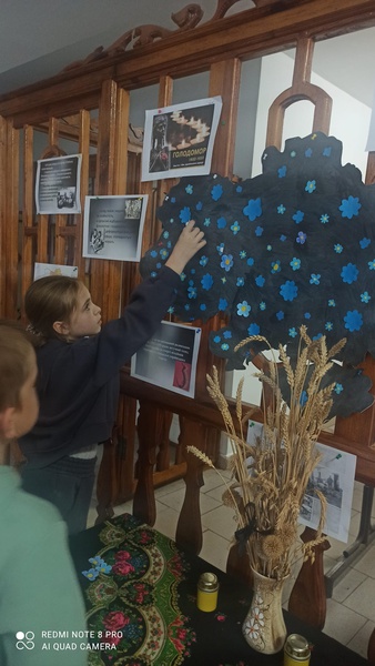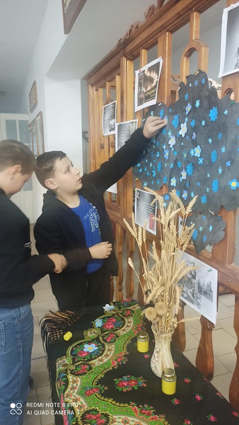 Поетичним словом, переглядом відео-роликів очевидців голодомору, згадали про трагічне минуле українського народу. Хвилиною мовчання та горінням свічок вшанували невинно закатованих жертв голоду. З метою шани дохліба, любові до рідного народу та історії своєї Батьківщини учні прикріпили до карти України квіти незабудки, які стали символом Голодомору.