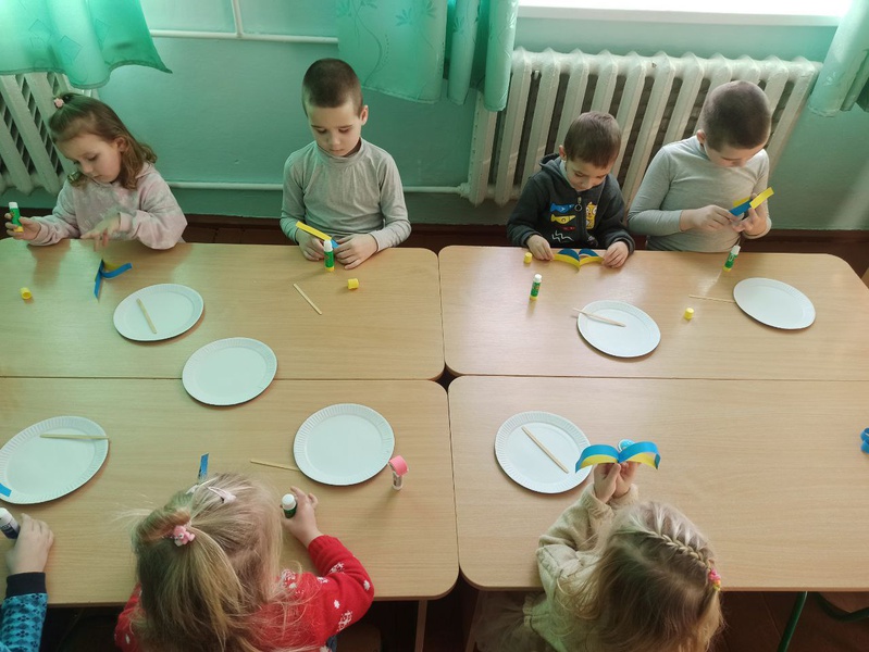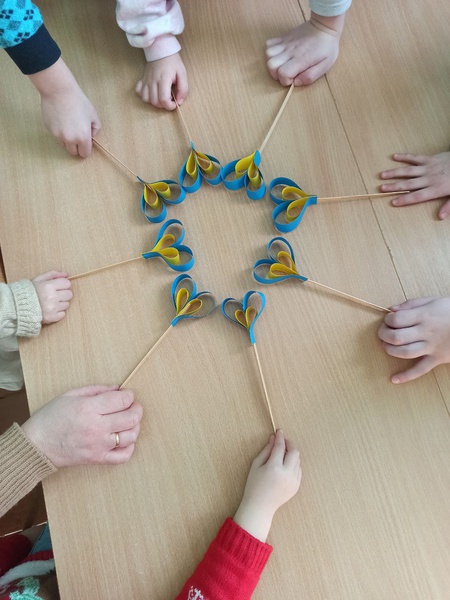 Дошкільнята з гордістю виконували гімн України, з цікавістю розглядали та вивчали прапор і герб, із захопленням виготовляли синьо-жовті сердечка, як маленький символ великої любові до своєї рідної України.