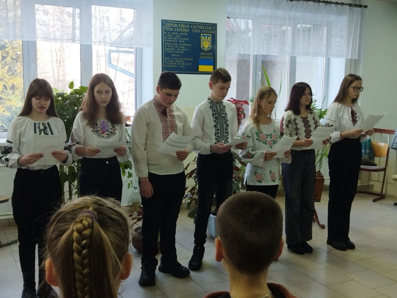 Під час заходу учні 9 кл. розповіли про важливий момент нашого історичного минулого - день злуки УНР та ЗУНР в одну державу, а також провели паралелі минулих подій із сучасними, наголосивши, що український народ вже вкотре знову виборює для себе свободу та незалежність.