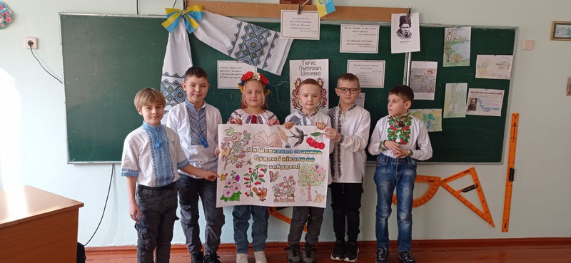 Гортаючи сторінки усного журналу, діти закріпили свої знання про життєвий і творчий шлях Т.Г.Шевченка - великого українського поета, дізналися хто такі кобзарі. Із захопленням виконували в групах цікаві завдання, об’єднували та записували прислів’я. Учні відтворили у своїй пам'яті вірші видатного письменника, слухали мелодію бандури та з позитивними емоціями заспівали пісню «Зацвіла в долині червона калина». І на завершення дня колективно розфарбували мегарозмальовку «Ми Шевченка славить будем і ніколи не забудем!».