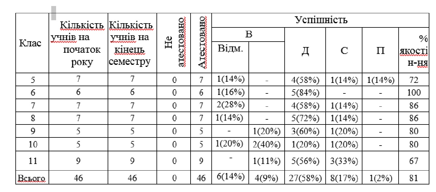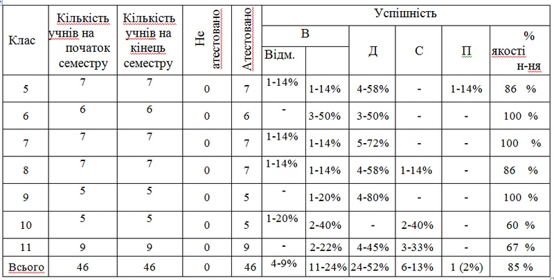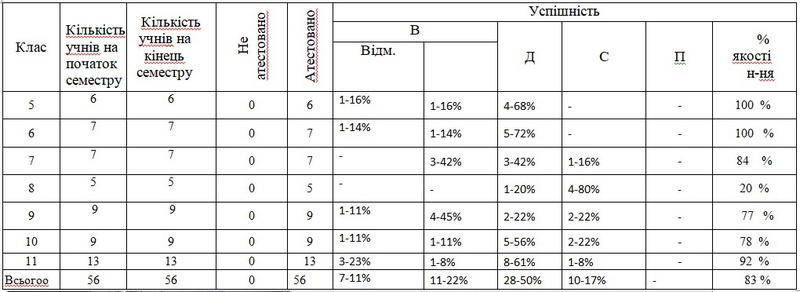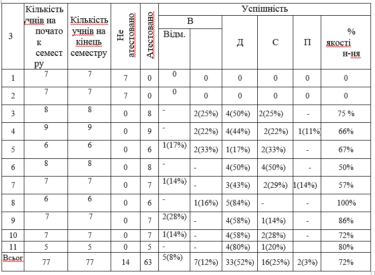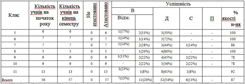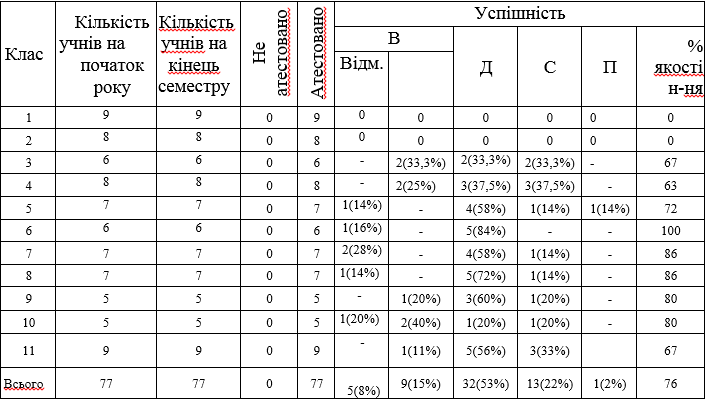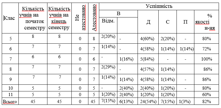 Успішність учнів закладу за рівнями навчальних досягнень за підсумками