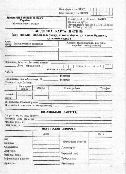 - медичну картку встановленого зразка